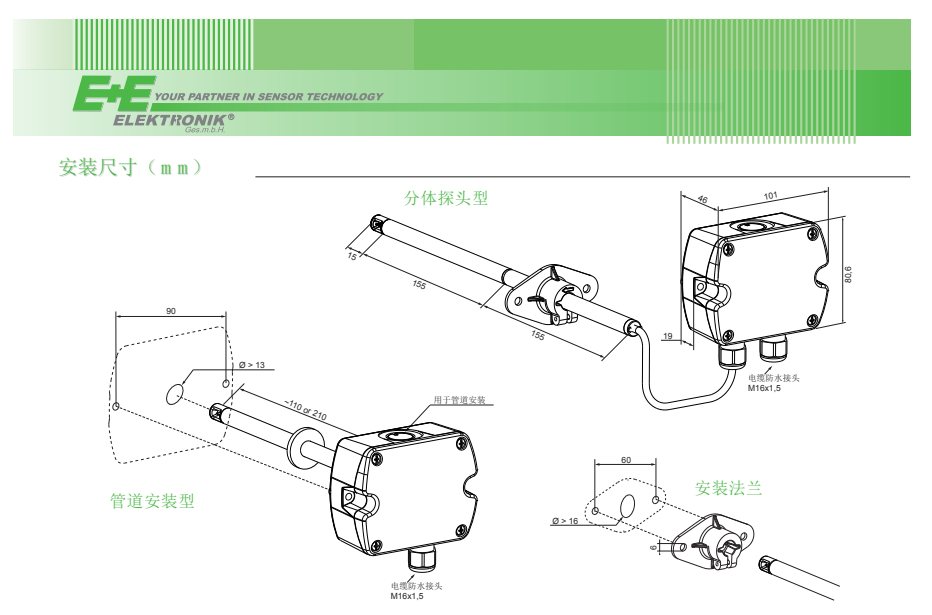 奧地(dì)利E+E ee650風速探頭(tou)安裝尺寸圖(tú):