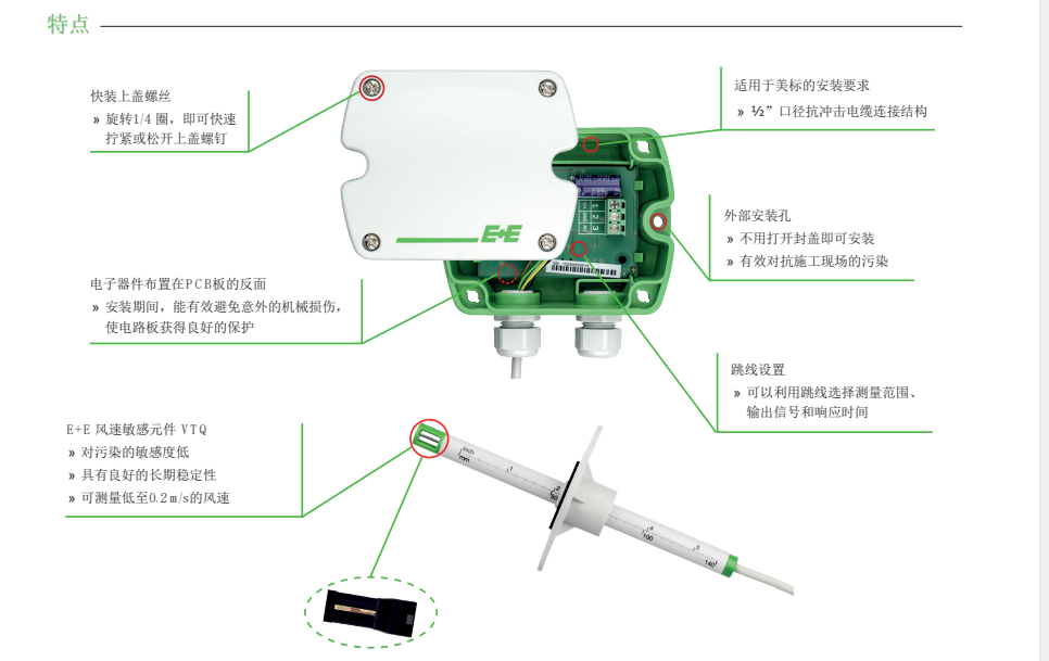 ee650室内外(wài)牆面安裝型(xíng)風速傳感器(qì)特點: