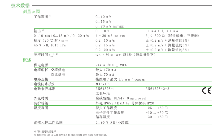 奧地利E+E ee650風速(su)變送器技術(shu)參數圖: